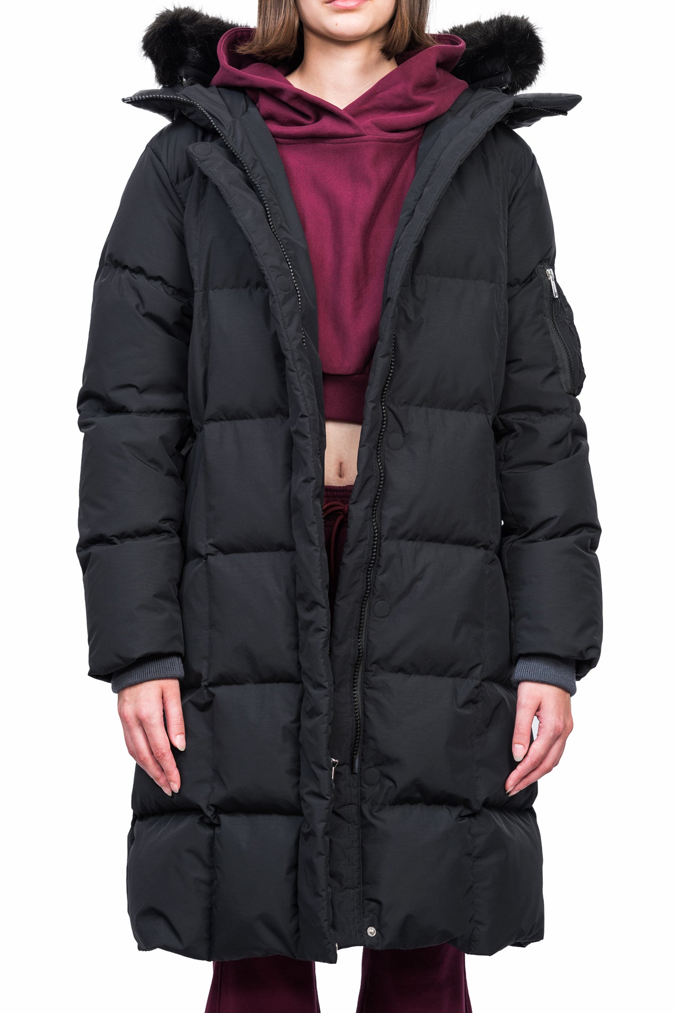 Embrace the chill in style with our luxurious Darragh Hooded Long Down Jacket, designed for ultimate warmth and versatility. This standout jacket features a detachable hood with a plush fur trim, allowing you to adapt to changing weather while maintaining a chic look. The 2-way zip front opening, paired with a storm placket, provides superior protection against the elements.