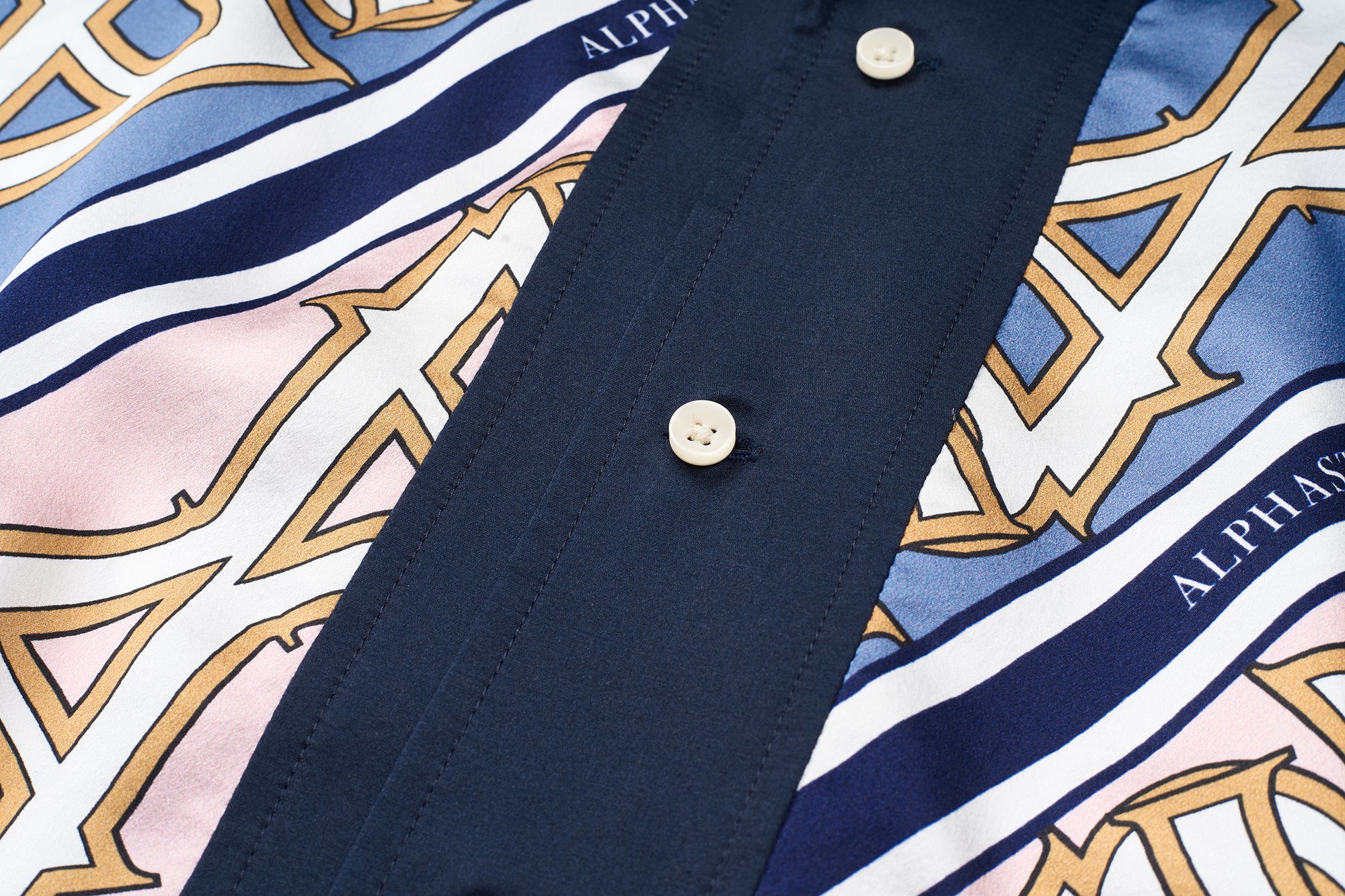 Easy vacation energy meets polished detailing in this cabana shirt. Cut from smooth poly satin with an allover print, it delivers lightweight comfort and a fluid drape that moves with you. The short-sleeve silhouette is framed by a tonal solid collar and matching button placket, while crisp white binding along the collar adds a fresh point of contrast. At the back, center pleats enhance mobility and shape, finished with a solid-color locker loop for a subtle utility touch. Relaxed yet refined, this shirt pairs effortlessly with tailored trousers or swim shorts for warm-weather versatility.