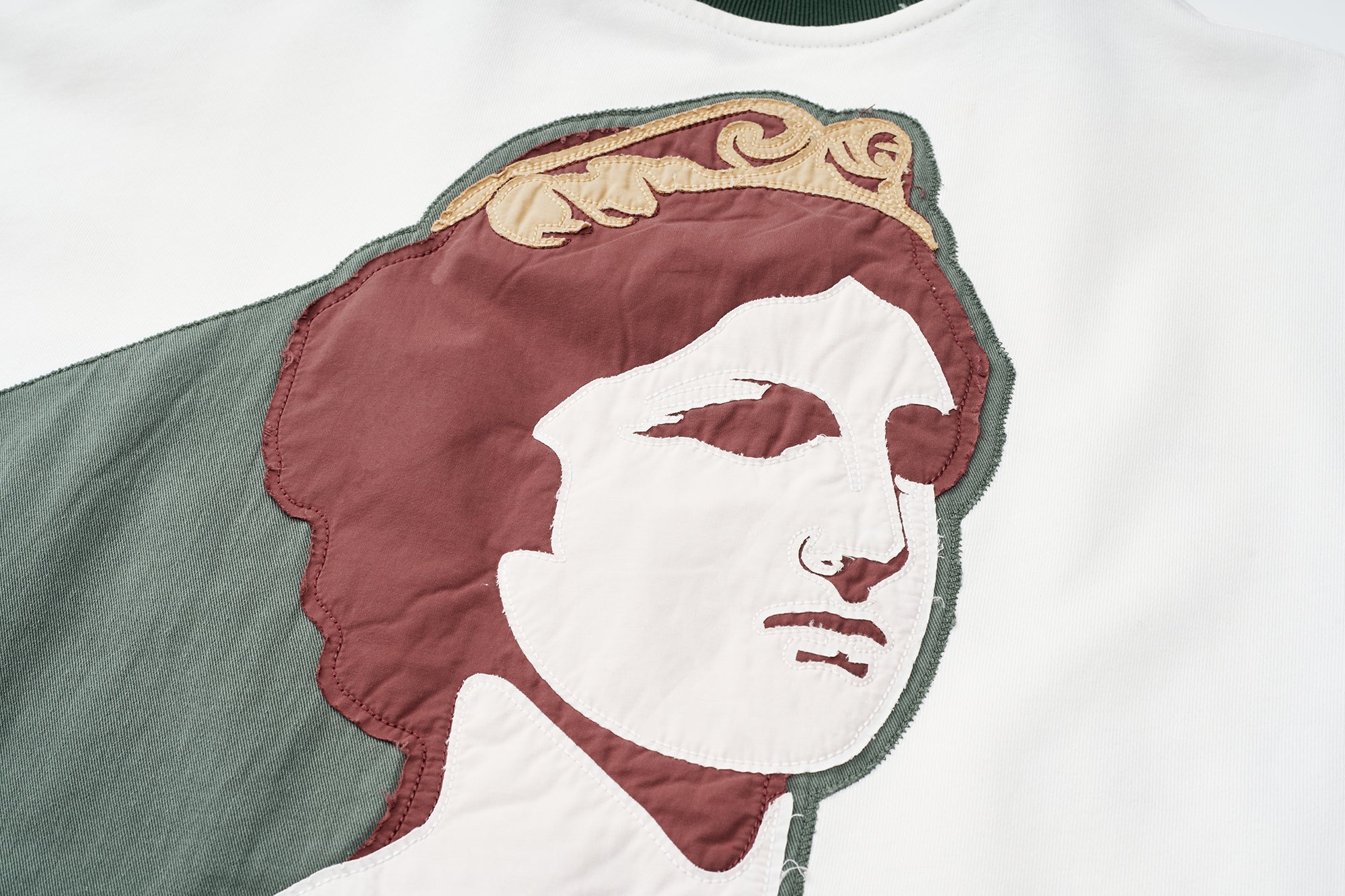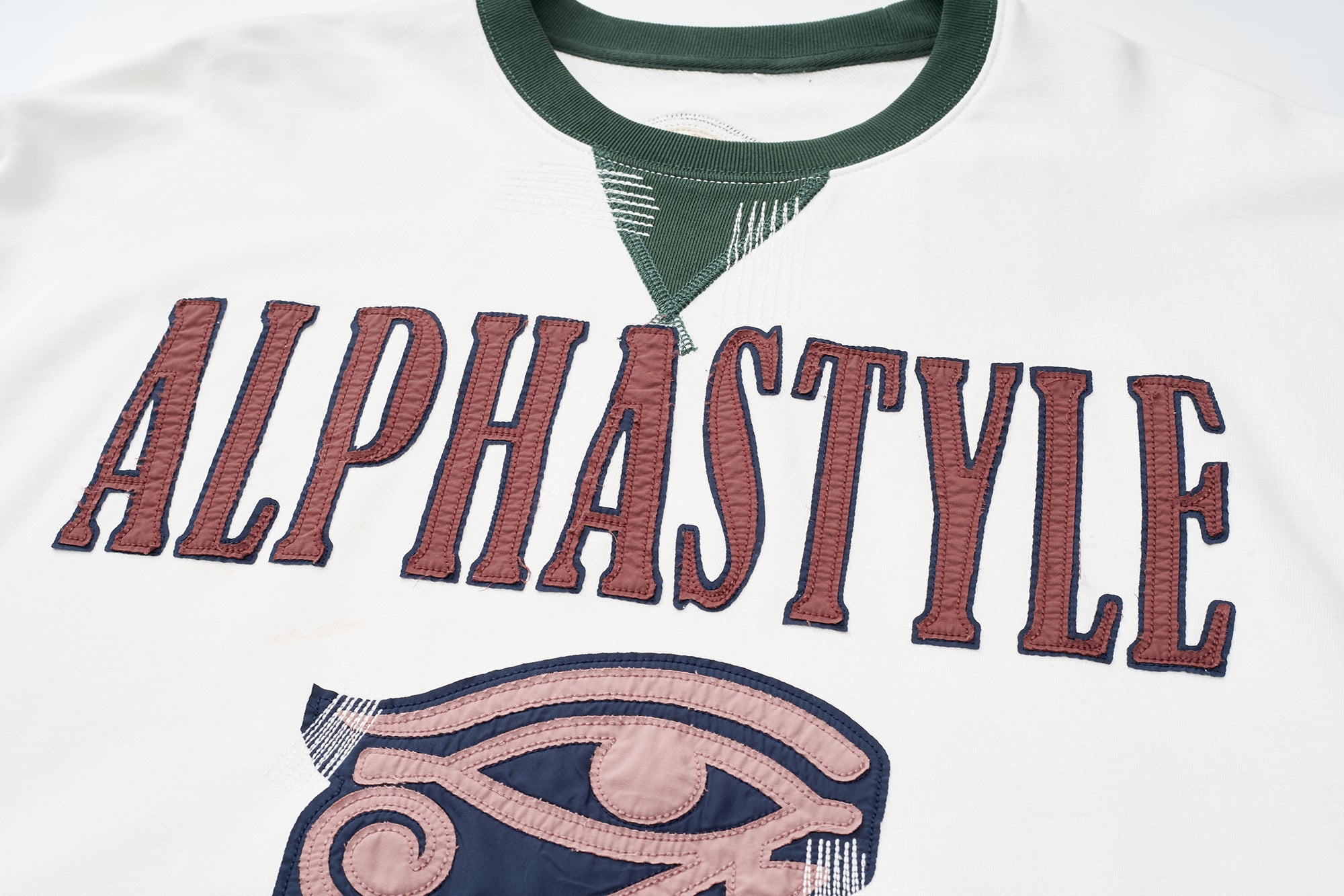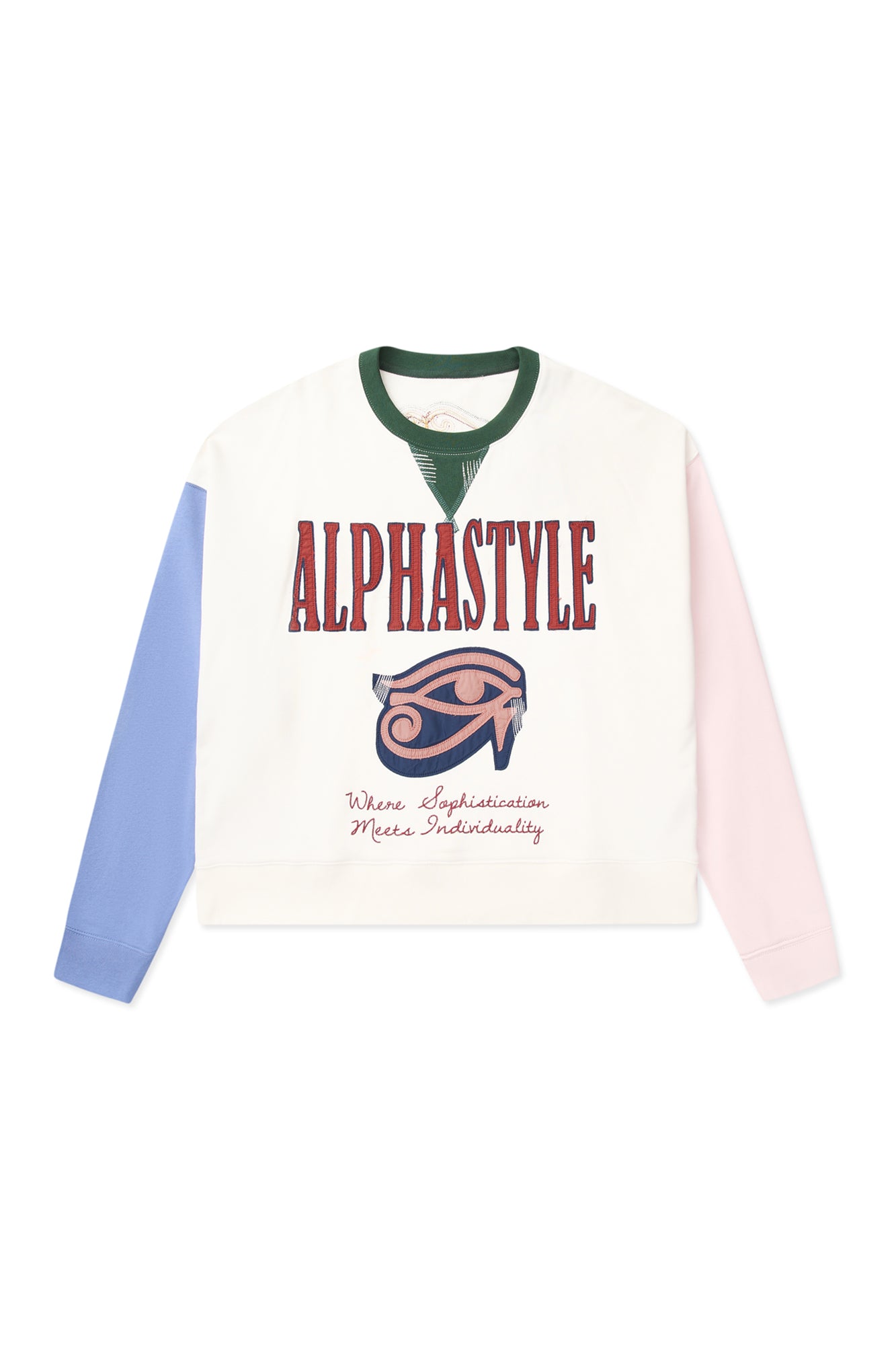 This premium cotton French terry sweatshirt brings bold color play to an everyday essential. Designed in a relaxed fit, it features a dynamic color-block layout with contrasting sleeves, while the ribbed collar, V-insert, cuffs, and waistband each arrive in their own distinct shades. Large-scale graphic appliqu? and embroidery across the front and back create depth, texture, and undeniable presence. Soft on the inside with a structured feel on the outside, it balances comfort and impact with ease. Throw it on to anchor casual looks or layer it to let the artwork speak. Effortless, expressive, and built to be noticed.