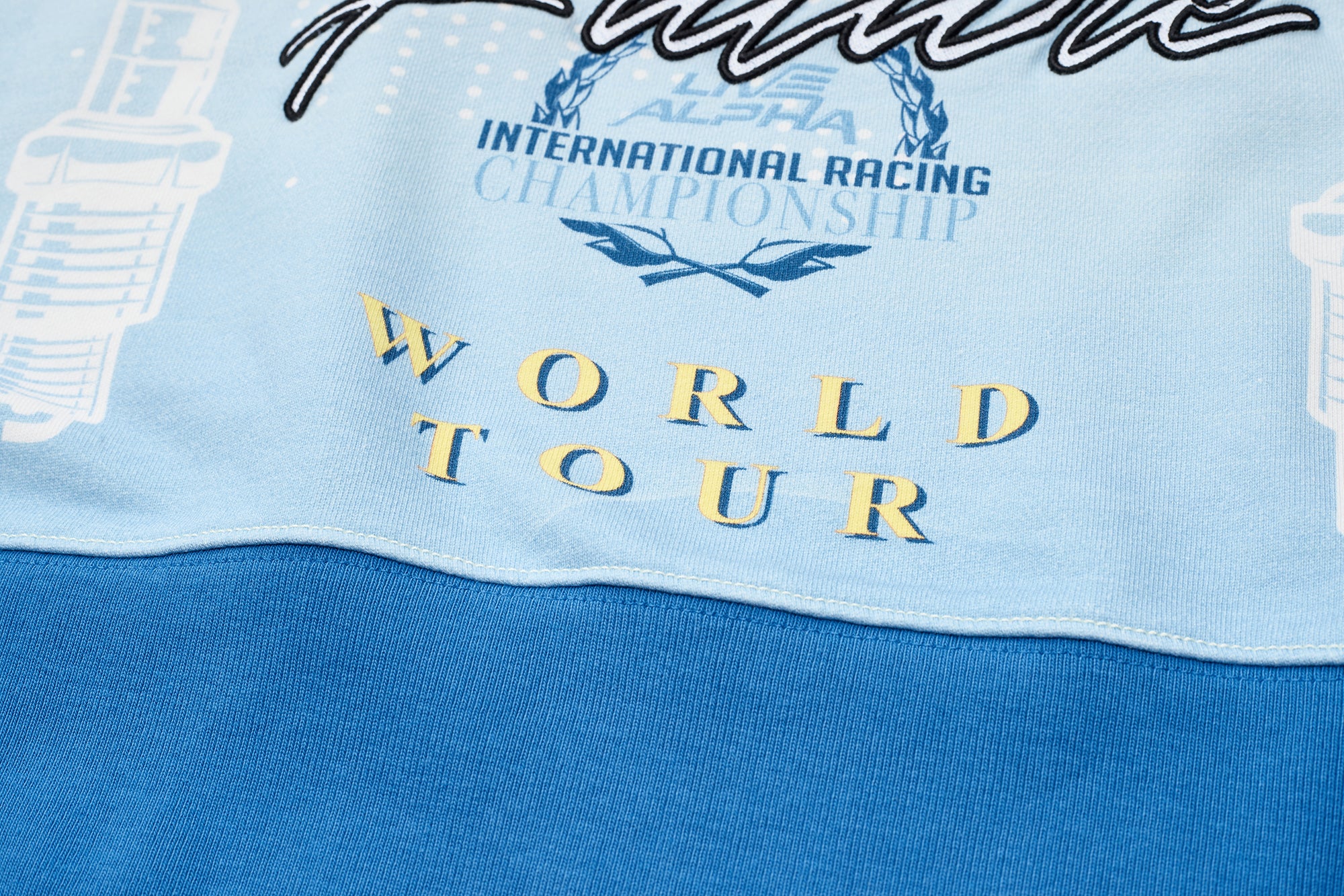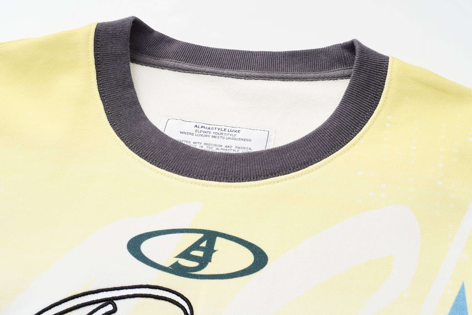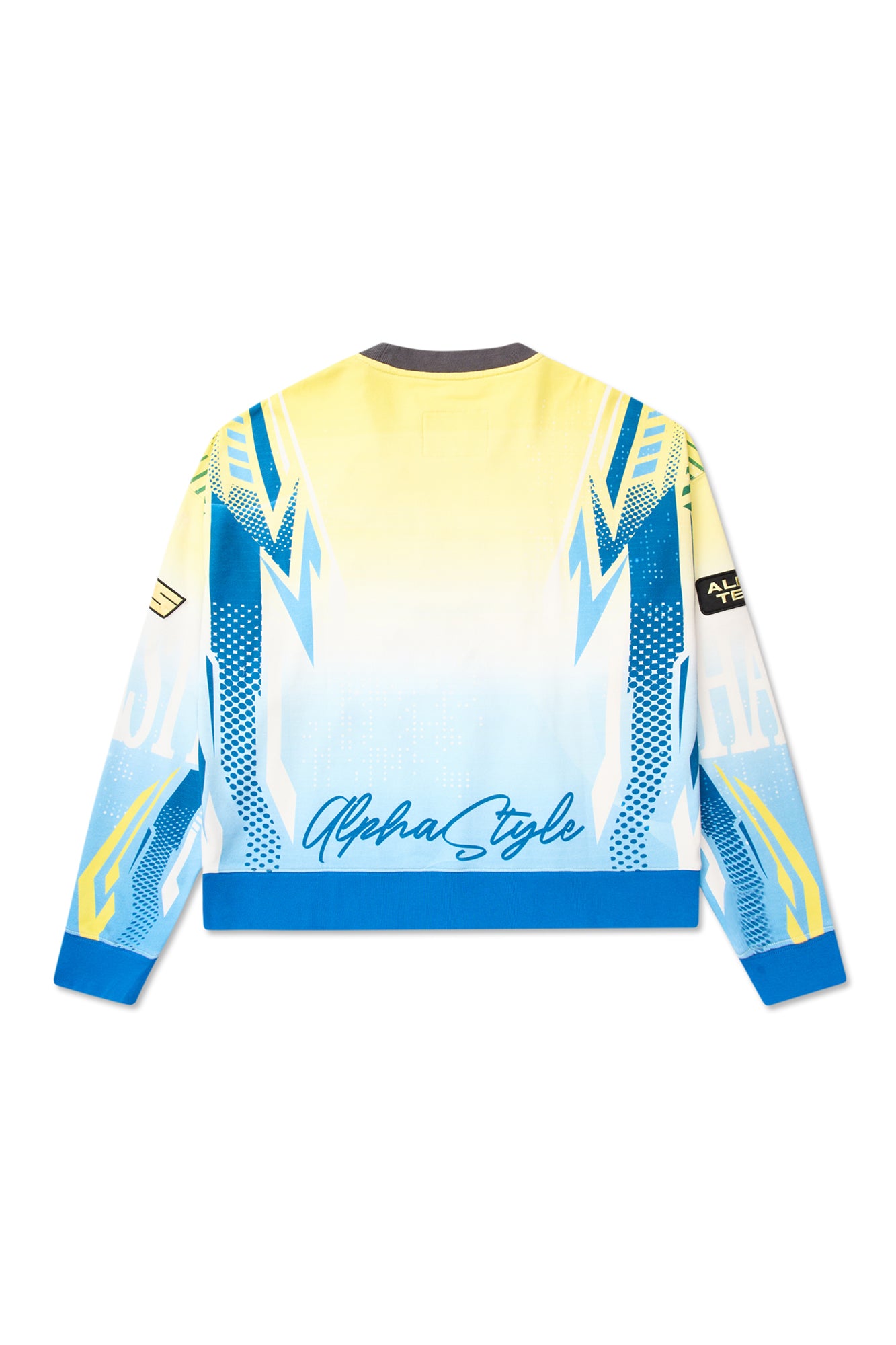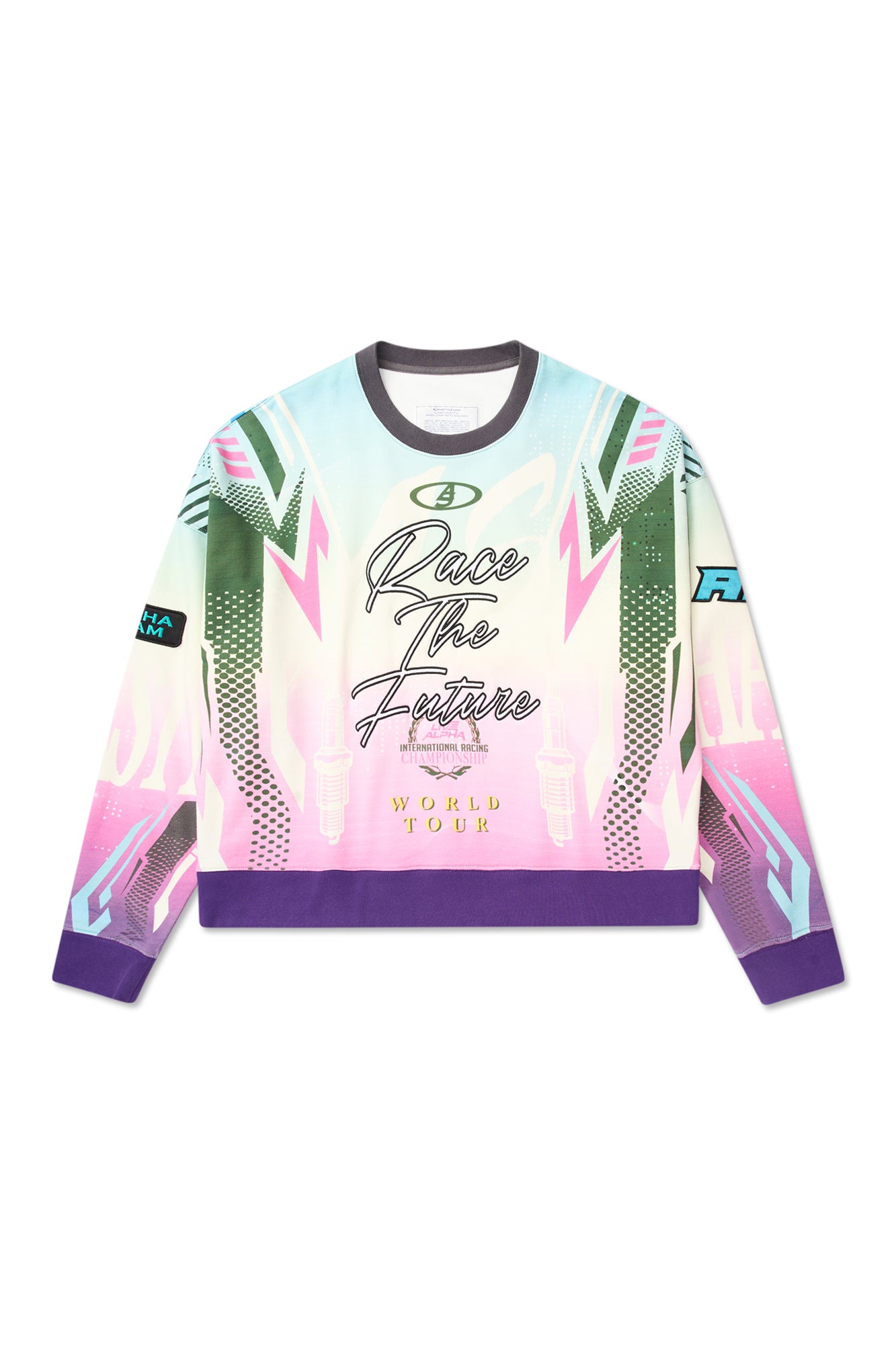 Comfort meets statement design in this premium cotton French terry sweatshirt. Cut in a relaxed fit, it features contrast ribbing at the collar, cuffs, and waistband to frame the silhouette with bold color blocking. Gradient-effect prints sweep across the body and sleeves, creating movement and depth from every angle. At the front, oversized slogan embroidery delivers unmistakable attitude, while appliqu? and embroidered patches on the arms add layered texture and crafted detail. Soft yet structured, it¡¦s an easy throw-on piece that instantly energizes casual looks. Built for impact without sacrificing comfort, this sweatshirt belongs in heavy rotation.