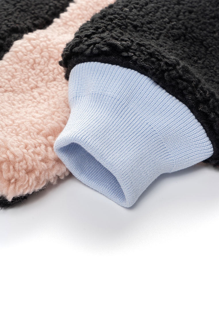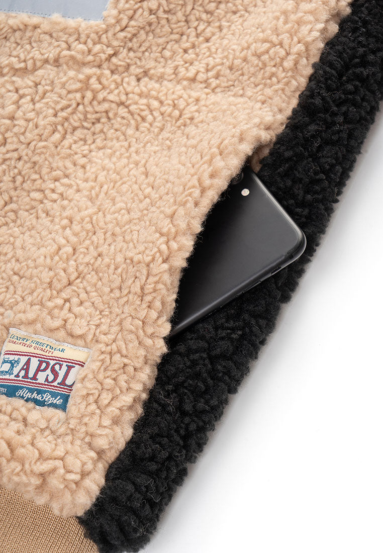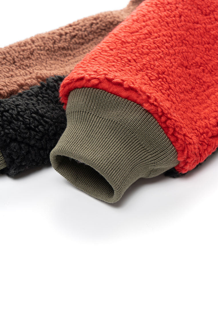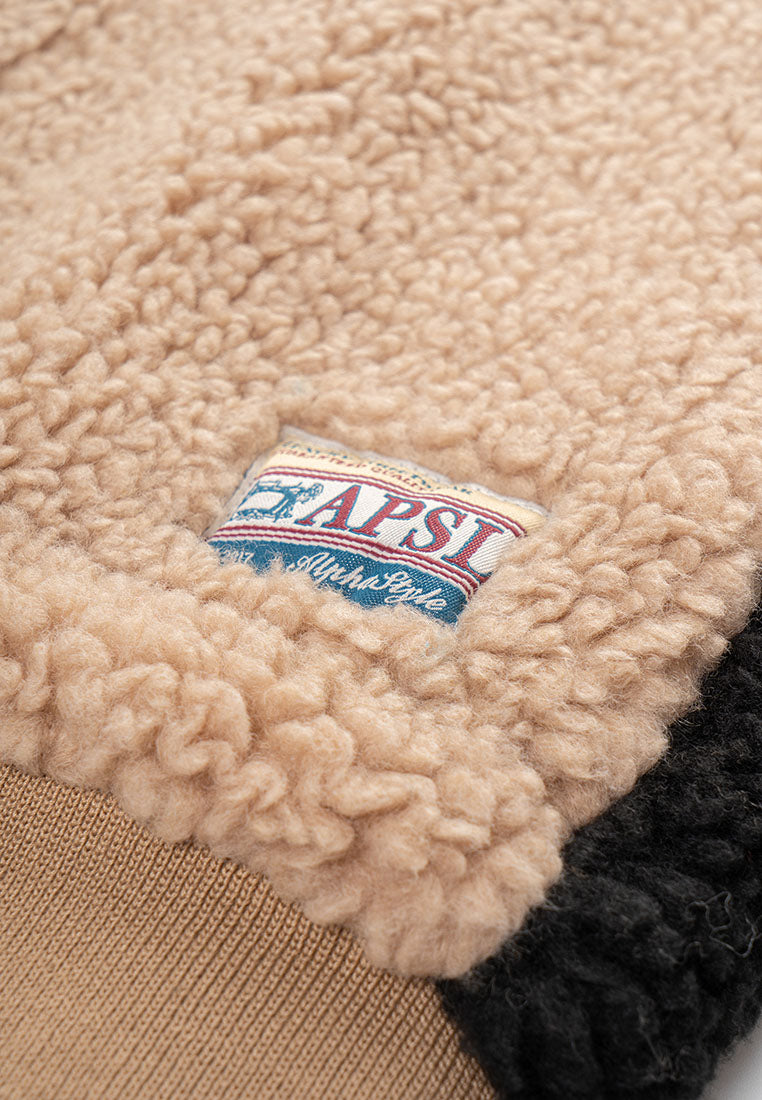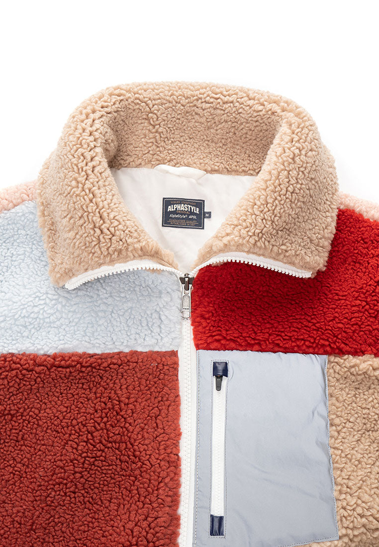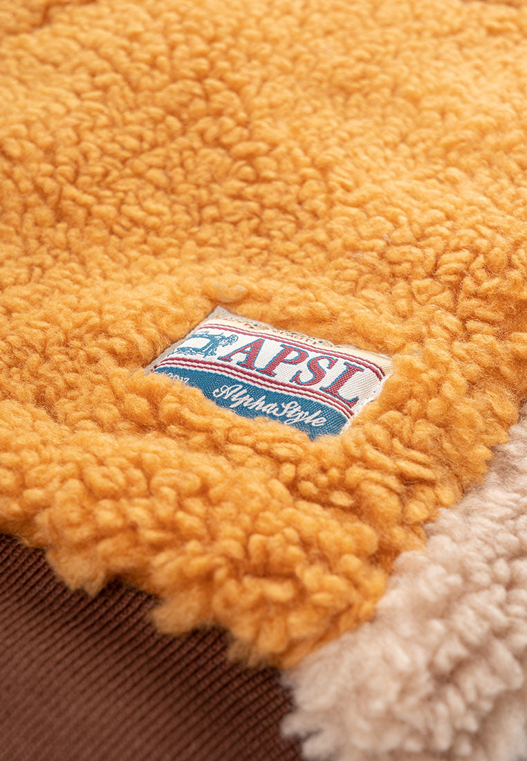 Stay warm in style with our Trish Vegan Sherpa Bomber Jacket, designed for ultimate comfort and everyday wear. Designed with a bold color-blocking pattern, this piece delivers a modern edge while keeping the cozy comfort you love. The oversized mock collar and ribbed cuffs and waistband lock in warmth, creating a snug and structured fit. A zip pocket on the chest offers easy access to your phone, while insert pockets on both sides keep your essentials close. The durable front zipper ensures long-lasting use, and the chainstitch embroidery on the back adds a standout finishing touch that elevates the street-ready aesthetic. Perfect for cold days or laid-back weekends, this jacket blends function, comfort, and style, making it a go-to piece for those who appreciate modern design with a touch of attitude.